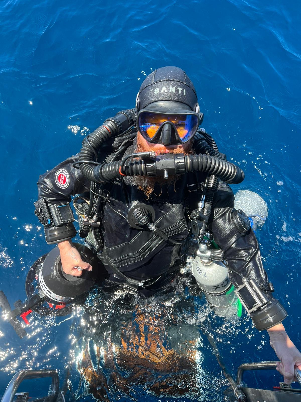Training dive with equipment preparing to bailout from 40m